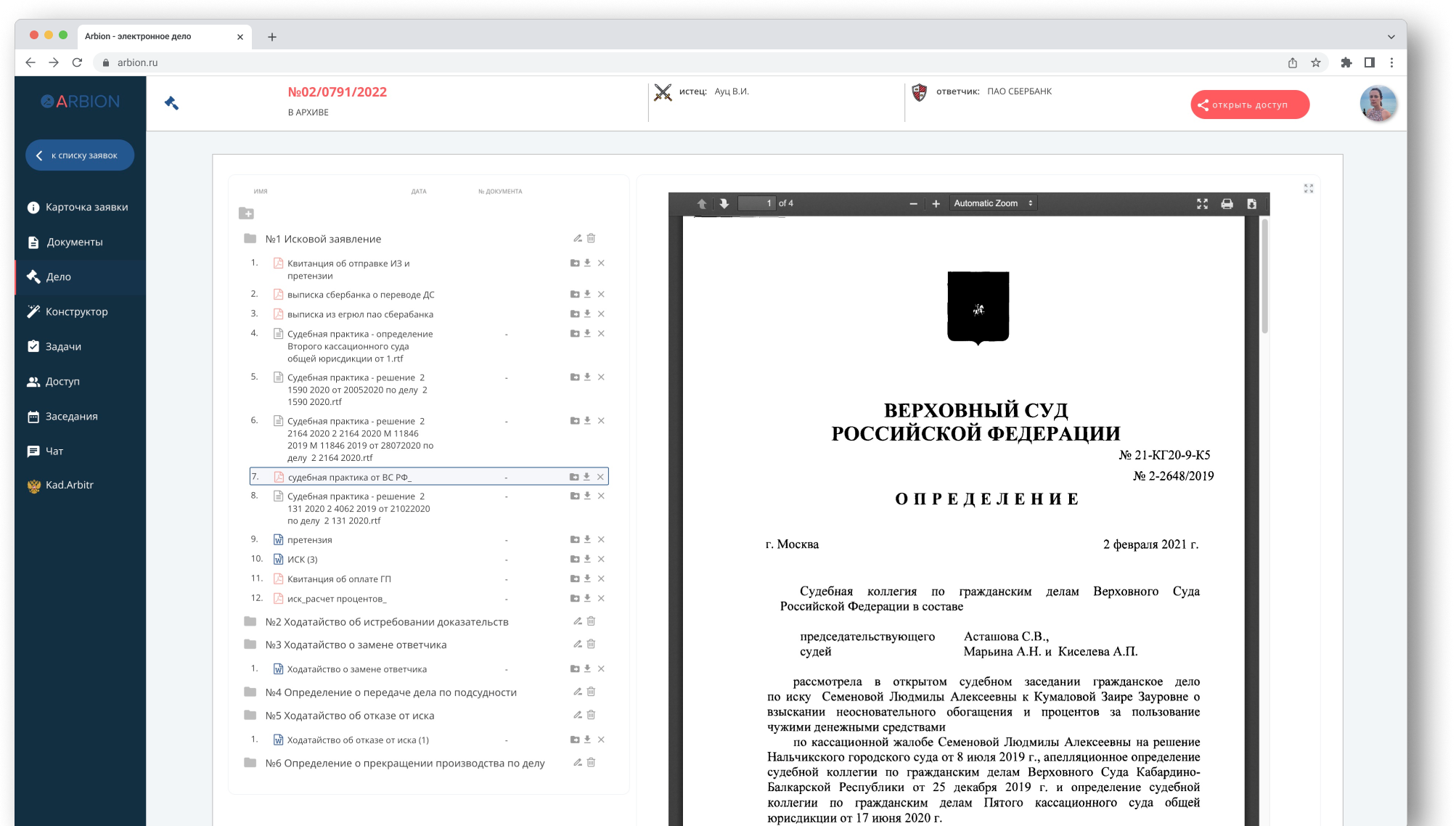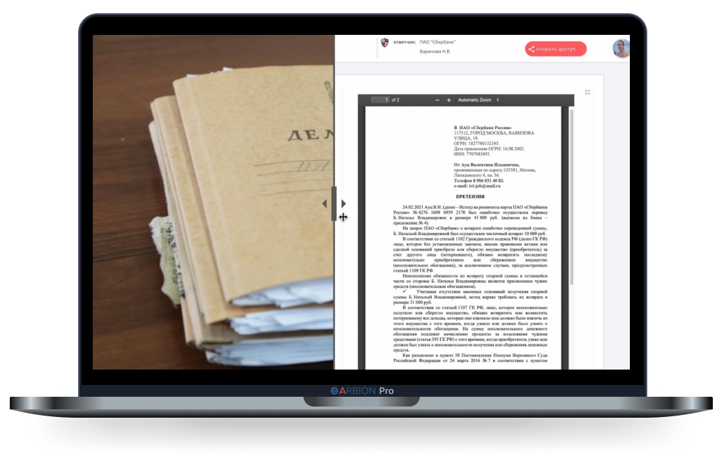 Забыли захватить на судебное заседание нужный документ? Теперь об этом не стоит беспокоиться: c Arbion все документы по делу всегда под рукой и доступны для просмотра с любого мобильного устройства